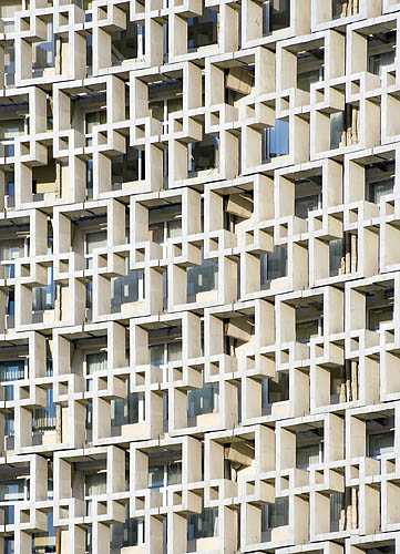 В декоративном дизайне внешней части здания в основном задействованы мозаика и внешний фасад. Последние служат по большей части для защиты от солнца и, кроме того, придают каждому дому специальные внешние эффекты.
