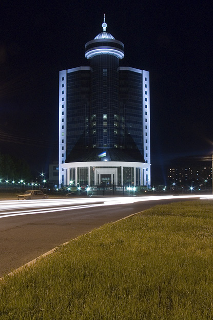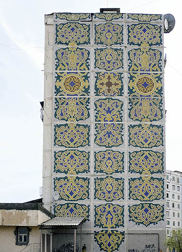 Стеклянно-стальные конструкции, производящие анонимное впечатление и глобально заставшие врасплох, смешиваются со стилевыми элементами исторических узбекских зданий, не позволяющих различить линию развития. Дизайн новостроек больше наталкивает на вопросы узбекской идентичности, чем на то, как они могли передать это в строительстве с помощью такой ссуды.