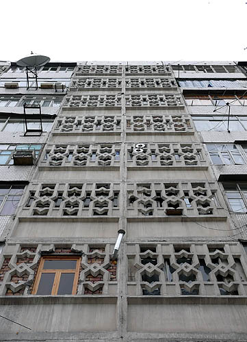 В контрасте к далеко идущим без каких-либо украшений конструкциям такого типа строения в других городах Советского Союза, фасады с фронтоном и области входа панельных домостроений в Ташкенте в основном украшены декоративными элементами.
