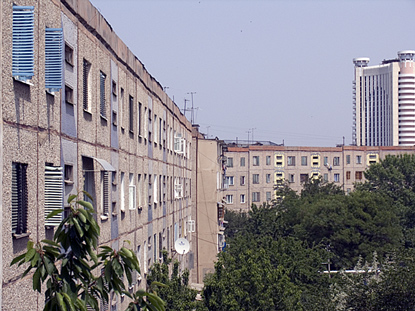 По сравнению с традиционными узбекскими семейными дворами с одно- или двухэтажными постройками высотные здания со времён Советского Союза менее предназначены для климатических условий Центральной Азии. Без затенённости деревьями этажи, расположенные выше, беззащитно подвержены значительной дозе солнечного излучения. Поэтому в летние месяцы, когда температура воздуха достигает 40 градуса по Цельсию, квартиры в панельных домах нагреваются намного сильнее, чем любая традиционная постройка с глиняной черепицей.