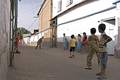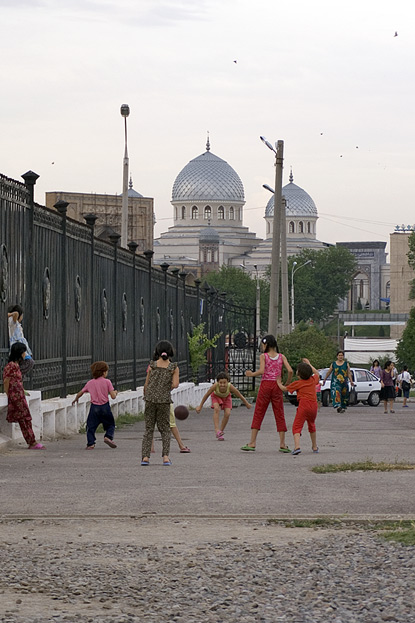 На улицах Ташкента редко встречаются молодые девушки или девочки в платках. Чаще встречаются девочки, играющие в футбол или другие игры с мячом.